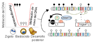 El ser humano y el L1 han coevolucionado para alcanzar un nivel de movilización compatible con su común supervivencia. De hecho, se conocen varios eventos en los que los elementos genéticos móviles han influenciado positivamente sus hospedadores, incluyendo humanos (Kapitonov et al. PLoS Biol 2005). El mecanismo central de control de la actividad de los L1HS, los más modernos y los únicos competentes para movilización en humanos, es el silenciamiento epigenético de su promotor, que está mediado por la metilación de una isla CpG presente en su 5?UTR (Muotri et al. Nature 2010). Sin embargo, en el desarrollo embrionario temprano y en el primordio de la línea germinal, ocurren sendas olas de reprogramación que implican una demetilación del DNA generalizada (Greenberg and Bourc?his. Nature 2019). Esto es aparentemente necesario para que las células embrionarias alcancen la pluripotencia en los estadíos tempranos del desarrollo, al tiempo que posibilita una ventana de activación del L1 que le permite alcanzar el genoma de la línea germinal y perpetuar nuevas copias. Es de destacar que existen algo más de 330 copias completas de L1HS en cada individuo, cada una con un promotor con potencial transcripcional. Aproximadamente el 10% de ellos son polimórficos, aún no fijados en la población humana, que añaden a la diversidad genética entre individuos (Ewing and Kazazian. Genome Res. 2011). La mayor parte de estos L1HS quedan rápidamente silenciados por metilación de novo del DNA ya en el embrión pre-implantación, aunque se desconoce el mecanismo con el que las células los localizan y silencian durante la reprogramación. Las copias de L1HS se han estudiado típicamente en conjunto debido a su extremadamente alta similitud. Su origen replicativo y reciente ha impedido tradicionalmente su estudio individual con técnicas ómicas basadas en lecturas de secuenciación cortas. Durante mi postdoctoral en el laboratorio del Prof. Faulkner (Mater Research Institute, Brisbane, Australia), yo desarrollé una técnica de secuenciación masiva para la obtención de perfiles locus-específicos metilación del DNA que permitió el estudio en masa de múltiples L1HS individualmente usando secuenciación Illumina (Sanchez-Luque et al. Mol Cell 2019), y recientemente hemos desarrollado una técnica con mayor cobertura basada en Oxford Nanopore Technology (ONT) (Ewing et al. Mol Cell 2020). Con esto encontramos unos L1HS concretos que están hipometilados consistentemente tanto en tejidos humanos adultos como en un modelo de células madre embrionarias humanas (hESC), lo que sugiere que escapan el silenciamiento establecido en el embrión temprano y permanecen activos en tejidos adultos. Más aún, algunos coincidían en presentar una mutación para el sitio de unión del factor de transcripción Yin Yang 1 (YY1) típicamente asociado a pluripotencia. Yo postulo que YY1 o el sitio de unión a YY1 están involucrados en la ruta de señalización que identifica y silencia los L1HS durante la reprogramación embrionaria. De hecho, YY1 parece estar igualmente involucrado en el silenciamiento y/o metilación del DNA de otros retrotransposones y también retrovirus, lo que sugiere que existe un sistema de control central que es utilizado por elementos genéticos móviles tanto endógenos como foráneos (Bernhard et al. PLoS ONE 2013; Schlesinger et al. Cell Rep 2013).